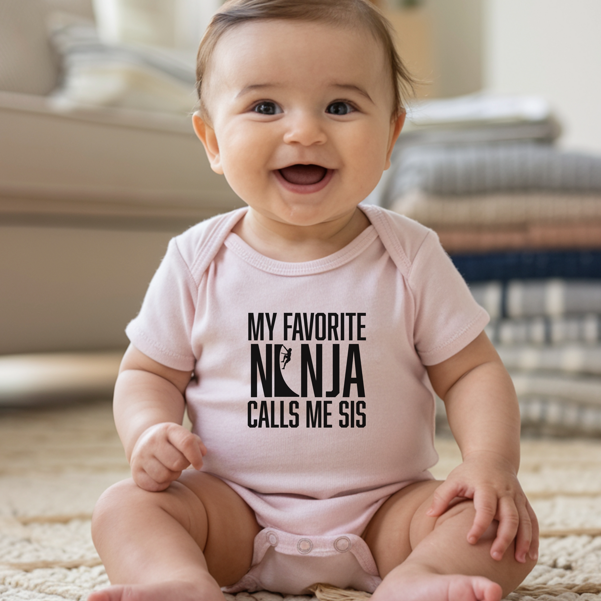 Custom “My Favorite Ninja Calls Me” Baby Onesie – Bro or Sis | Warped Wall Design with Color Options