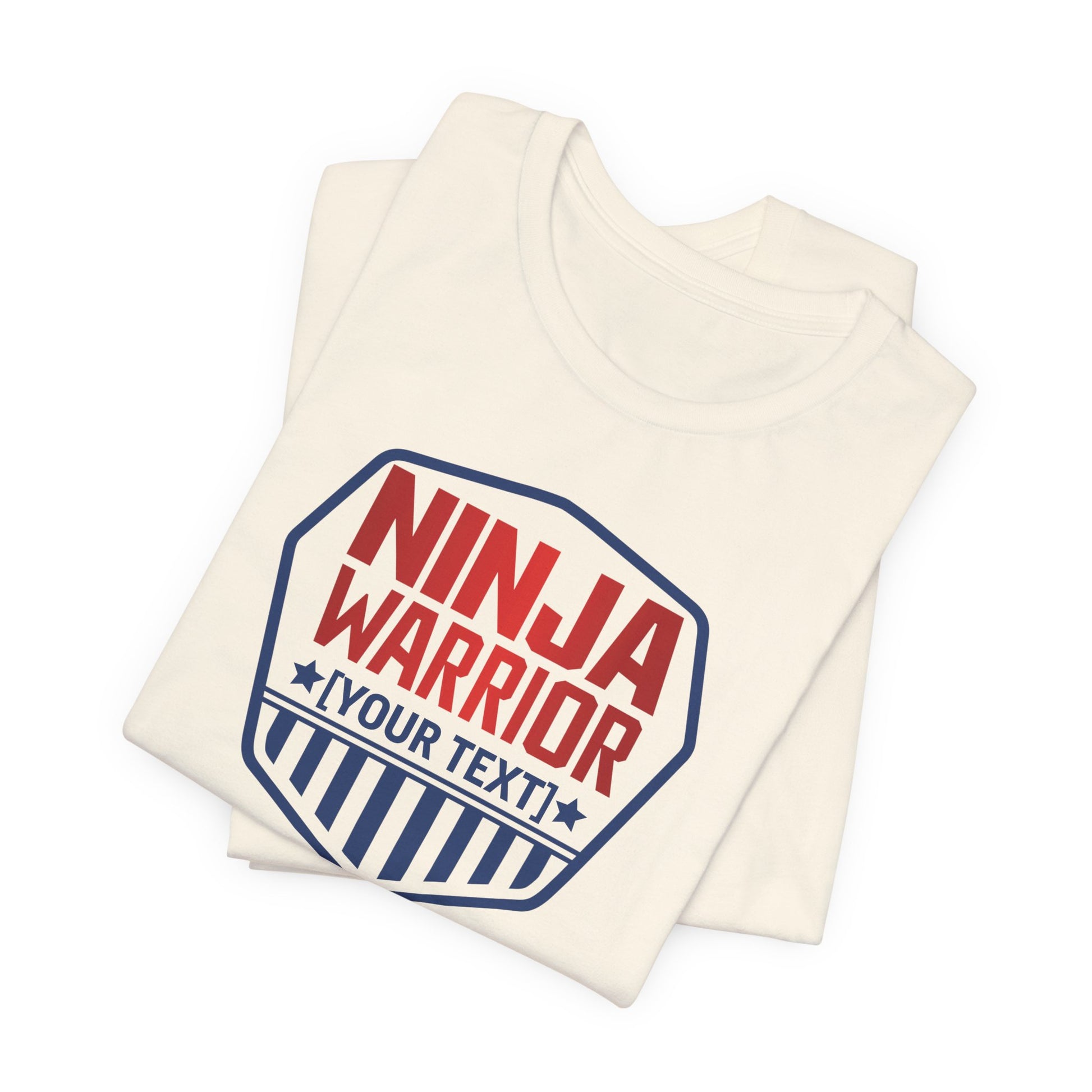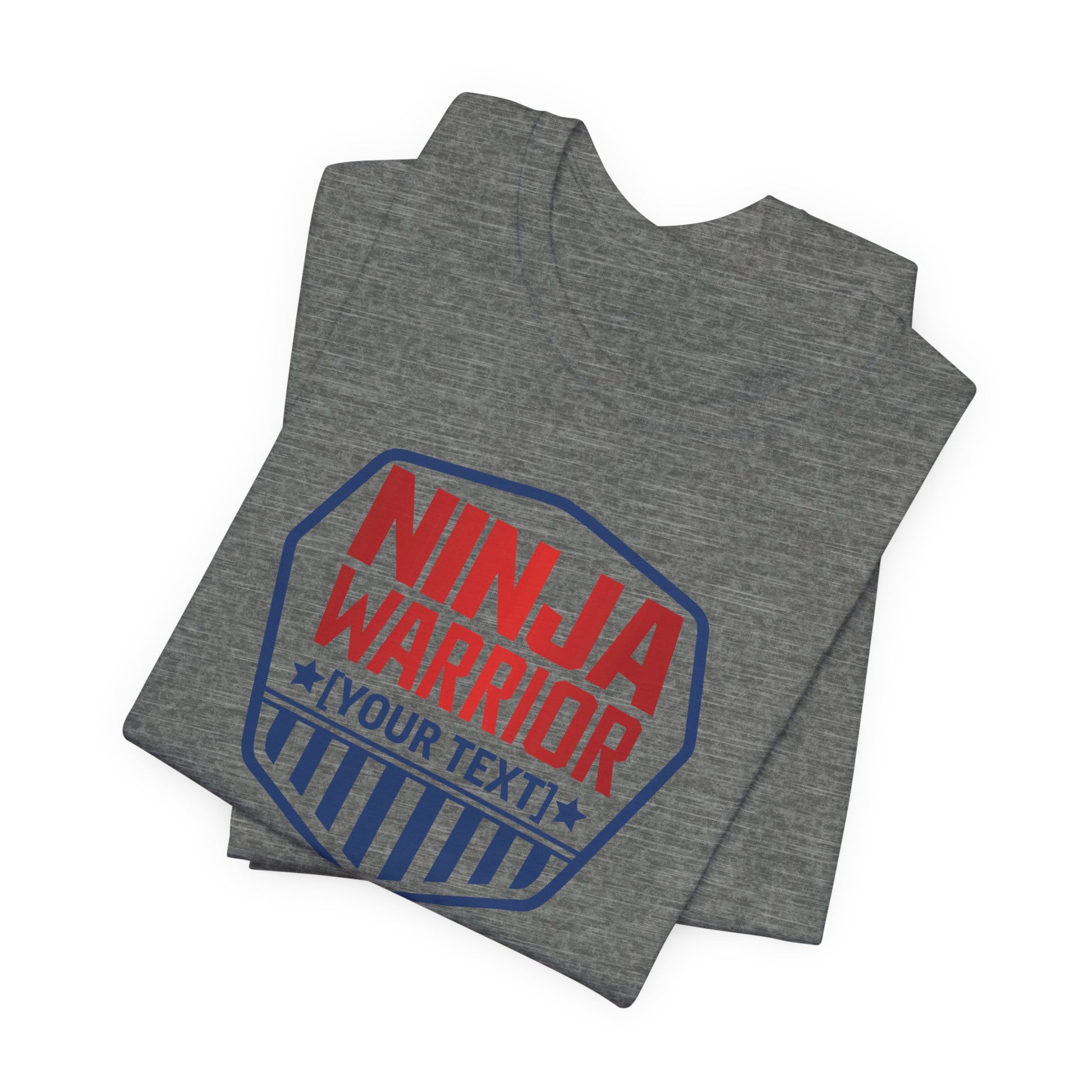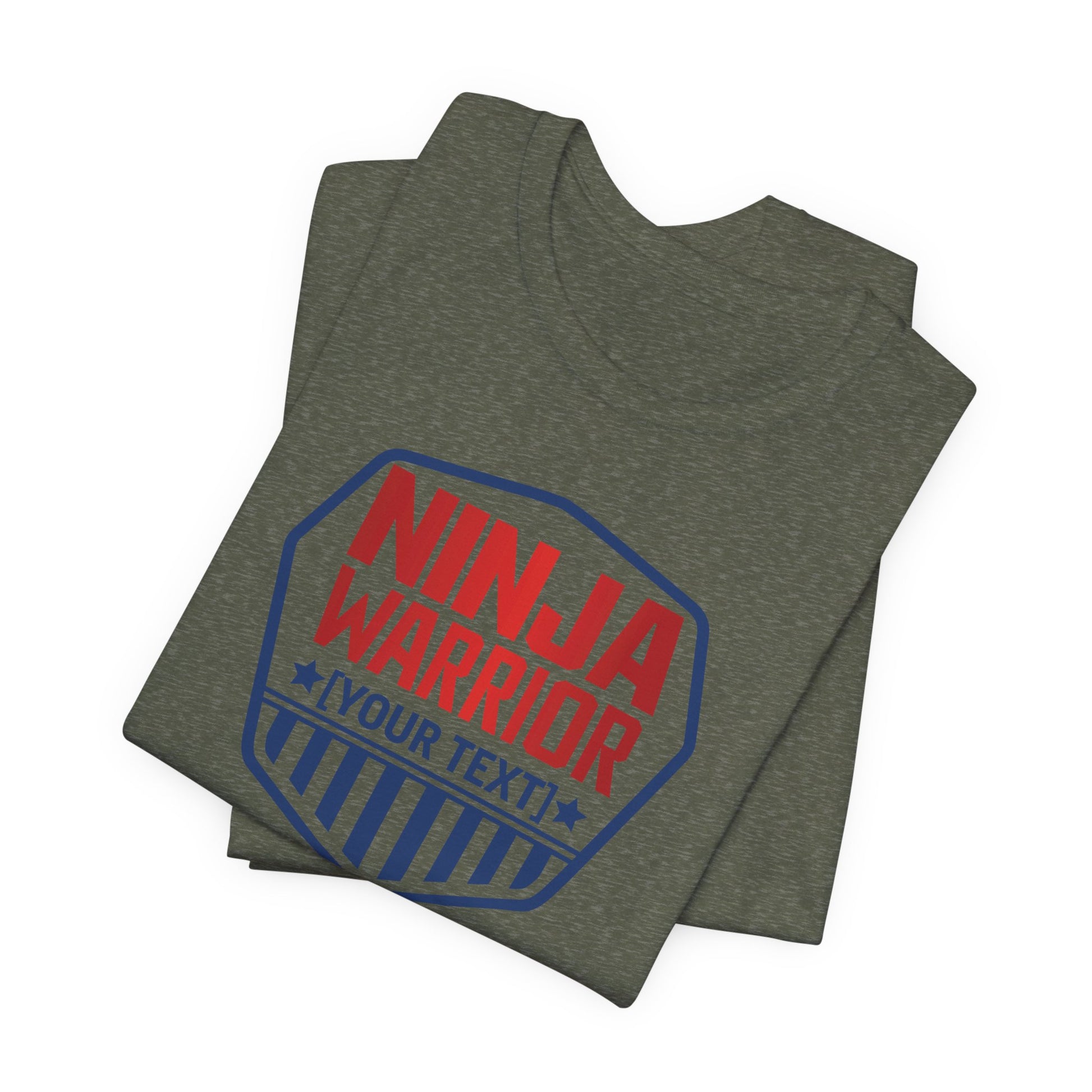 Celebrate your Ninja Warrior pride with this customizable unisex t-shirt! Personalize the bold Ninja Warrior shield design with your choice of text—such as “Ninja Warrior Mom,” “Ninja Warrior Dad,” “Ninja Warrior Coach,” or any family title—and select your favorite shirt and design colors to make it truly yours. Crafted from soft, breathable fabric, this tee delivers all-day comfort whether you’re competing, coaching, or cheering from the sidelines. Perfect for moms, dads, grandmas, grandpas, coaches, and fans, it’s a unique way to show support and team spirit. Also makes a thoughtful gift for Ninja Warrior families and athletes.