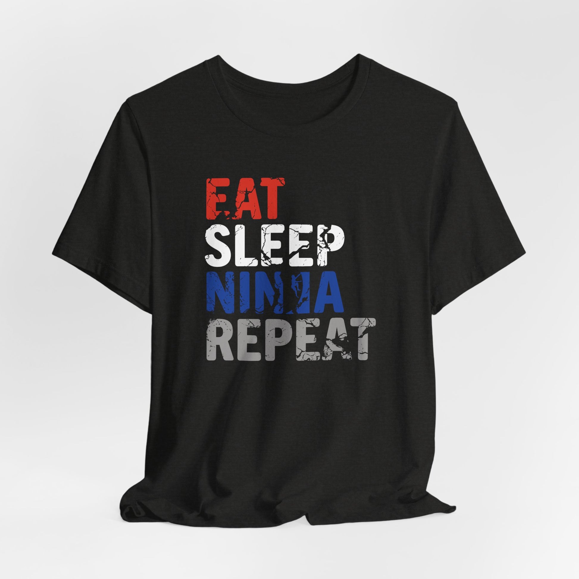 Eat Sleep Ninja Repeat Distressed Warped Wall T-Shirt