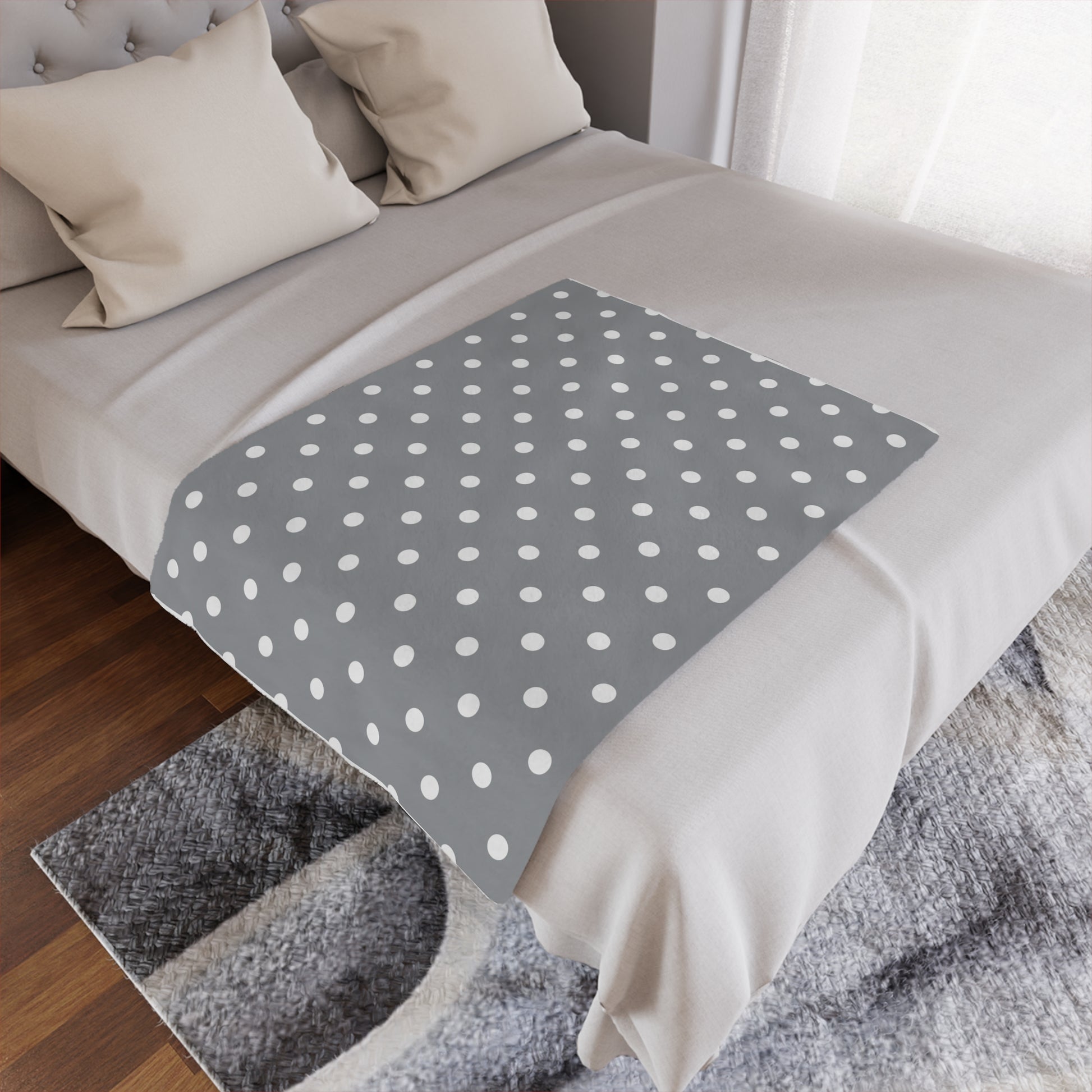Gray Polka Dots Microfiber Fleece Blanket - Ultra Soft & Cozy Throw
