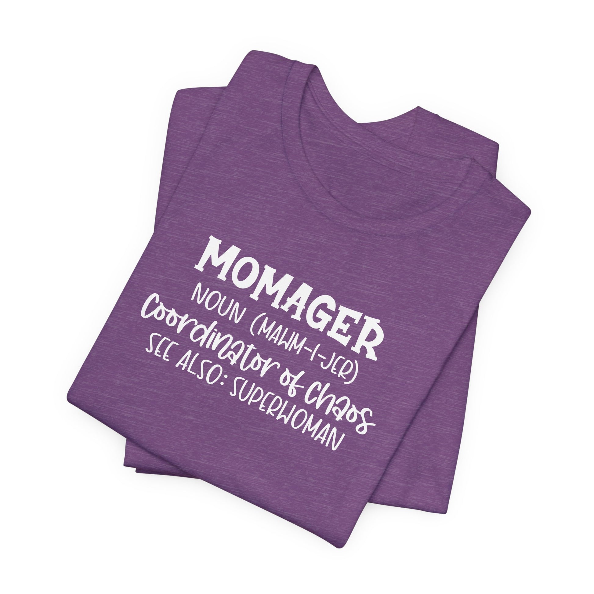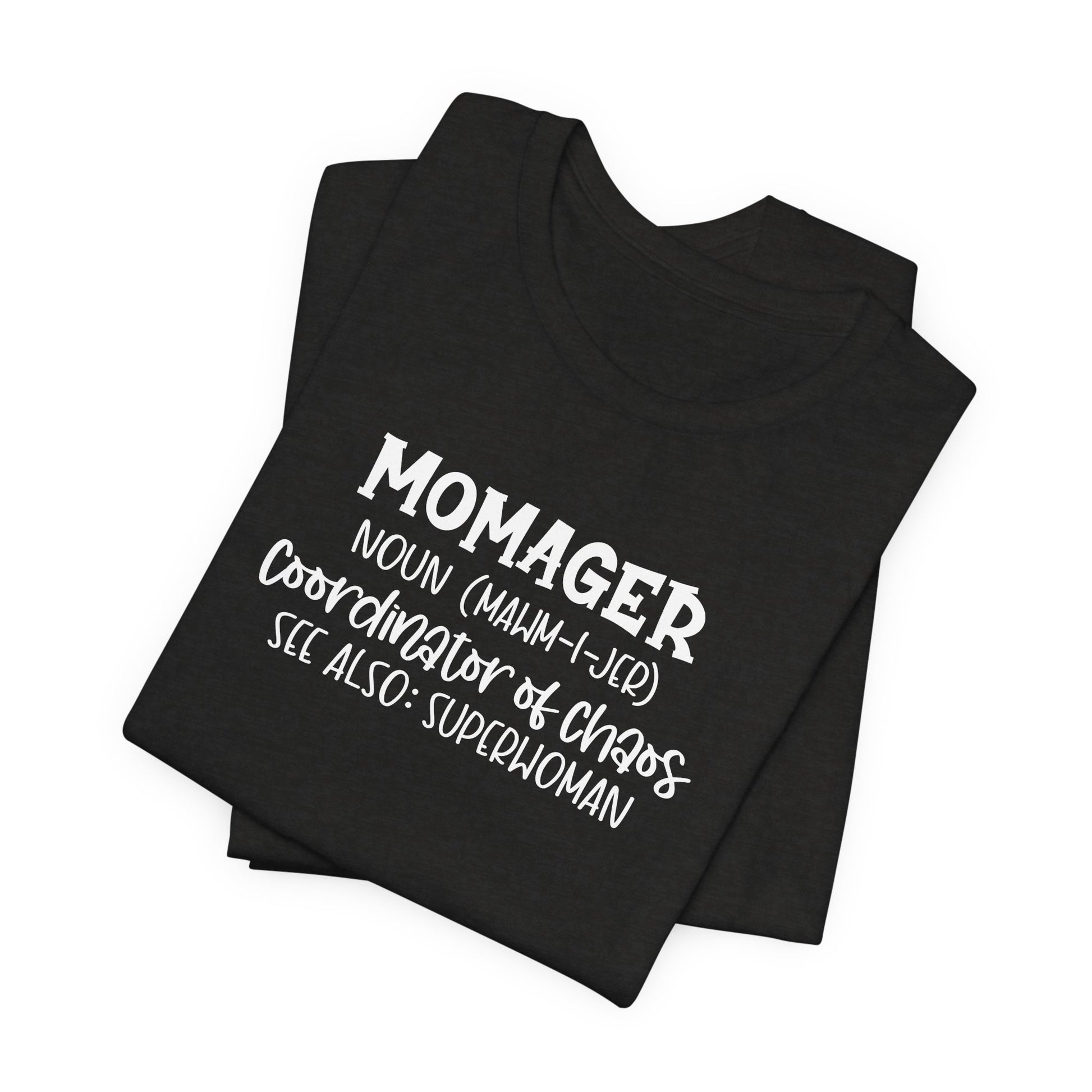 Celebrate the multitasking queen in your life with our “Momager” t-shirt — definition: Superwoman, Coordinator of Chaos. Perfect for sports moms, business moms, or anyone who juggles it all, this tee combines comfort and style with a playful nod to her superpowers. Great for everyday wear, sideline cheering, or as a thoughtful gift for the ultimate mom boss.