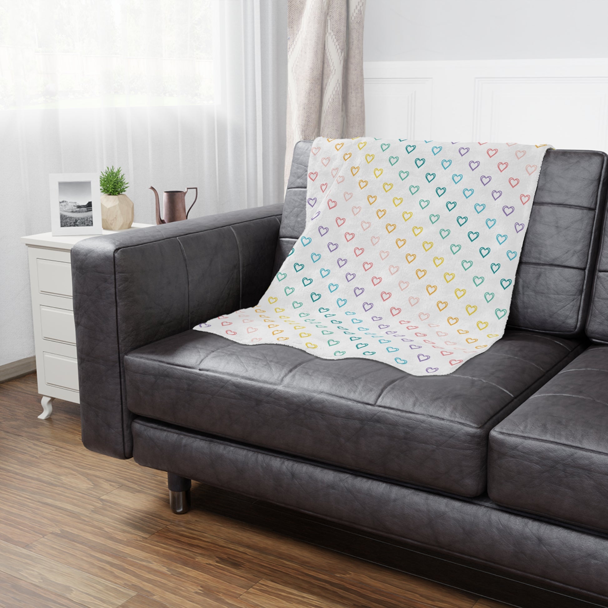 Pastel Rainbow Hearts Microfiber Fleece Blanket - Ultra Soft & Cozy Throw