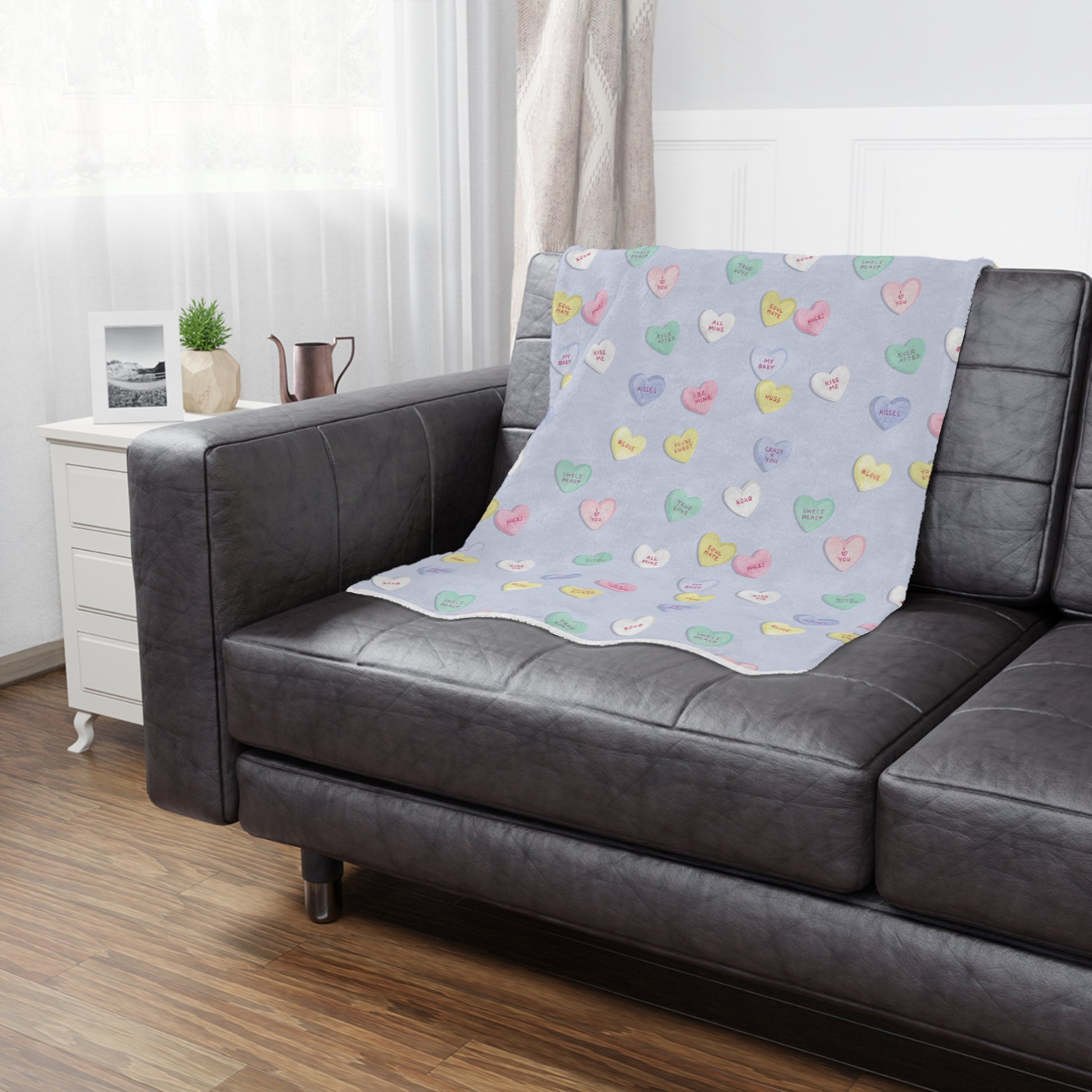 Purple Candy Hearts Valentine Microfiber Fleece Blanket - Ultra Soft & Cozy Throw