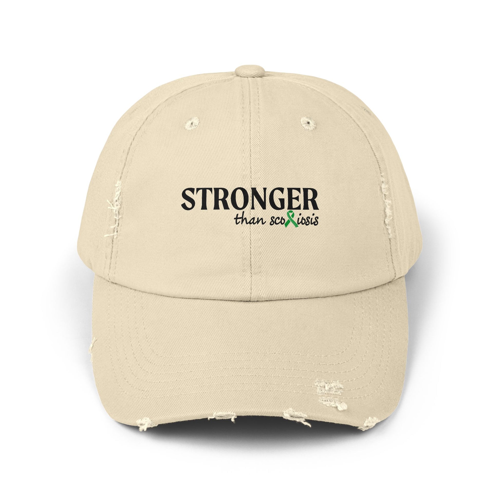 Scoliosis Awareness Hat, Stronger Than Scoliosis, Unisex Distressed Cap