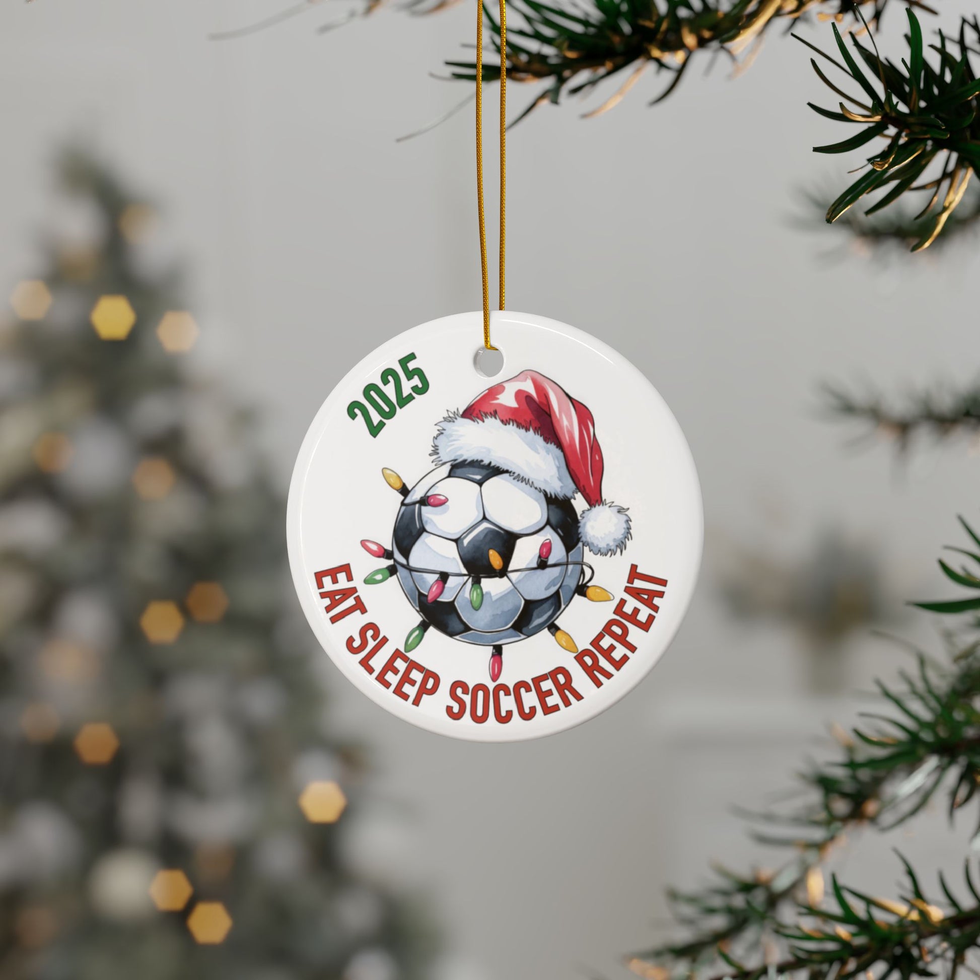 Sports Fan Ceramic or Acrylic Ornament, Eat Sleep Repeat Soccer Basketball Baseball Softball Football, Christmas Tree Decoration, Holiday Team Gift